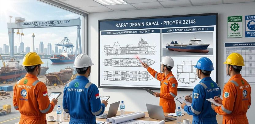 Mencakup seluruh disiplin: hull, piping, electrical, outfitting, painting — dalam dokumen terintegrasi yang menjadi pegangan tim proyek.